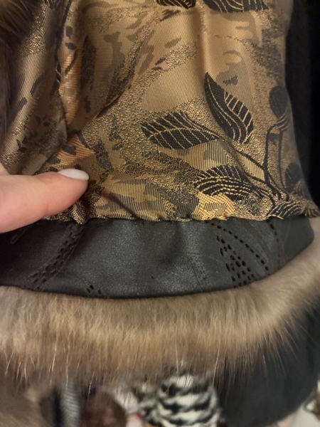 Очень странно низ сделан. Эта кожаная полоса. В шубках из соболя используют мягкую замшу в тон. А это что то несуразное.