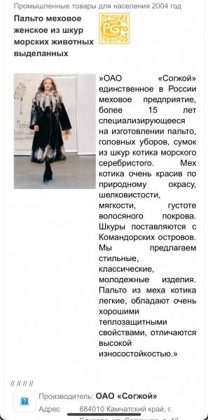 ОАО "Согжой" Россия, камчатский край, г. Елизово вот так написано на ярлыке там, где должен быть бренд. Я такое впервые вижу. Это ОАО занимается рыболовством и пушниной (по словам) продавца. и там на месте шьют шубы )))))))