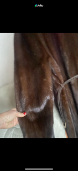Шубке больше 10 лет, однозначно, она порыжела уже. То есть ей лет 20 где-то. Старомодные декоративные пуговицы со стразами на рукавах и древняя петелька тоже это подтверждают. Шуба еще и в роспуск. У таких вещей нужно обязательно осматривать мездру, чтобы не получить сюрприз в виде латанной-перелатанной шубы, как совсем недавно было у женщины (тему поищите ниже). Текст объявления про «размер на 42-44, но можно и 48» особенно порадовал)))