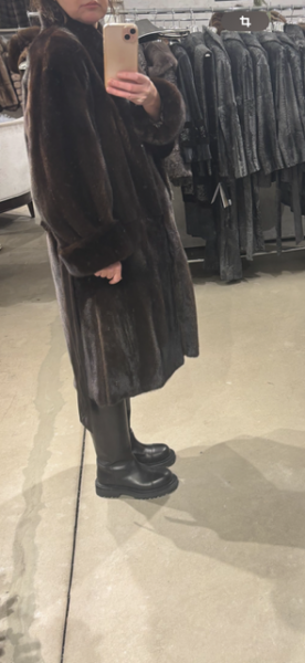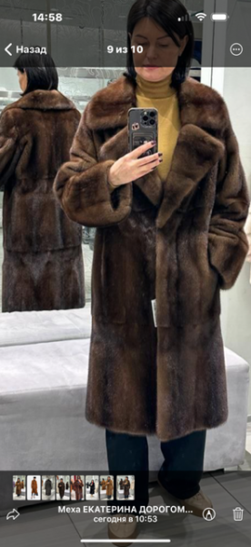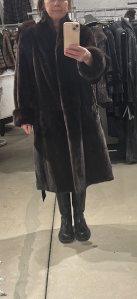 Это тот же цвет , модель халат более приемлема для ежедневной носки , но в моем размере по их меркам он 42 , она конечно вся смотрится широковато ( рукава не берем в расчет , они мне везде длинны . шубка с тканевым поясом, но я не люблю их завязывать , только сзади если . Вердикт - шубы в таком цвете ( он у них махагон ) нереально красивые и их захотелось сразу , в отличии от Дорожкиной . Вроде все не плохо, добротно, но все обычно выглядит, как на всех. Это точно не про стиль , которого хочется . Т.е я б сказала , что это шуба в которой не выделяешься из общей толпы и такая , но "старушка" у меня уже висит в шкафу минимум лет 5 не одета , хоть и блеглама греческая .