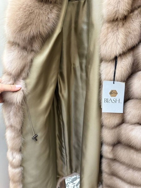 Обесцвеченный, даже не тор-тор, а прям совсем, соболь, причем возрастной, потому что такого цвета я давно не видела. Шуба выглядит современно, но у нее очень старый ярлык Союзпушнины. По бренду Gimas гуглятся только старые шубы. Есть ощущение, что в каком-то году произвошел ребрендинг и теперь он называется по-другому. По контуру подклада кайма, которую сейчас не пришивают в дорогих шубах. Если все так и шубе лет 15+, то для обесцвеченного дикого меха это много.