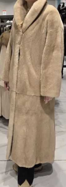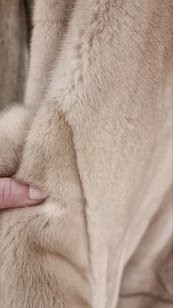 Длинная шуба в два ряда из самцов - это всегда грустновато -мощь, неудачное низкое место стыка рядов, сильно заметен стык, поскольку встречается особо пушистый огузок и низкая гладкая шейка, в неудачном месте получается провал по рослине. Такая длина - это либо роспуск из самцов, либо трехрядка из самок, либо если уж два самца, то в разбивку ( шейка 1- шкурка 2-огузок 1)