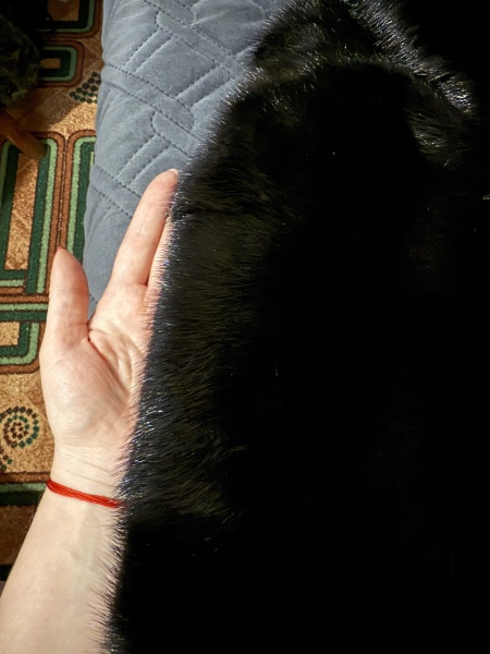 У шубы немного жестковатые волоски и на фоне подушки их заметно видно. Ну и тёмная мездра (магазин не скрывает, что шубы тонированные) Но мерила 2 другие модели у них же и там мездра была светлее чуть и волоски покороче.