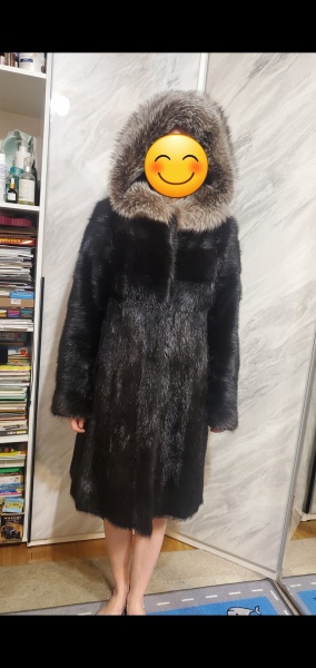 Капюшон объёмный, из меха песца. Подойдёт на размер 42-44 размер.