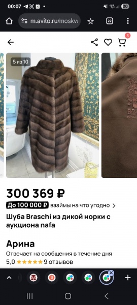 Вот поздно вы спохватились про этого продавьца. У нее столько этой дикой норки было и именно браски. Обычно когда вещи на авито продаются, проданные вещи в завершение объявления уходят. Хотела показать какие шубы были у продавца. Но их там нет, видимо удаляет проданные объявления совсем.