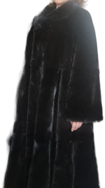 Все как надо: брали мерки, был макет (тряпка), потом примерка, но... у меня не было никогда такой широкой шубы, я не мерила ни разу такие модели и как она должна сидеть, я не знала. А то видео я тоже конечно не видела (где шуба правильно сидит и идет фалдами). Я померила образец из зала ателье как раз 48 размера и девушка сказала, что моя шуба будет на основе этой. На мне она сидела именно так же.
