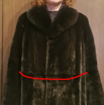 • Я подложила объем в область груди и шуба стала выглядеть как на манекене (первое фото). У меня такое впечатление, что при моем 42-44, шубу мне сшили 48 размера. Когда в области груди появляется объем, она фалдит и выгладит намного лучше. Если оставить как есть (второе фото), передние полочки выглядят сморщенными в области груди, а с боков появляются две складки, не фалды, а именно складки. То есть лишний объем шубы просто уходит в область этих складок под руковами.