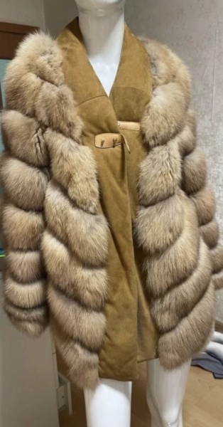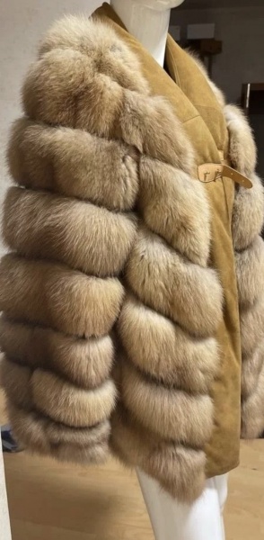 • Это спереди замшевая вставка. Между шкурками меха прошита темно коричневая кожа