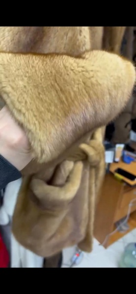 Цвет «голд» - не природный, он получается после обесцветки меха. Плюс китайцы всё-таки тянут свой мех и в сочетании с роспуском получается проблема всех китайских светлых шубок - они сильно раскалываются и выглядят неряшливо, как будто шубку хорошо носили. Там позади висят черные и коричневые шубы - там это так в глаза не бросается. Я примеряла короткую крестовку от r&s (с низкой остью) у нее такого не было, она достаточно равномерная и пухлая была. Китайки они вообще все разные, даже в одном и том же цвете.
