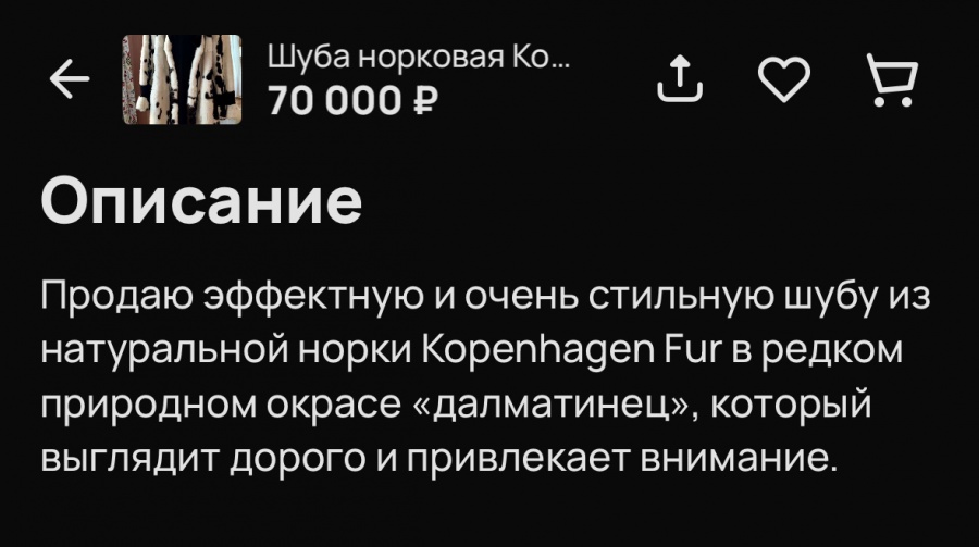 • Попалась мне, значит, на авито шуба из редкой и яркой норки «ягуар»: